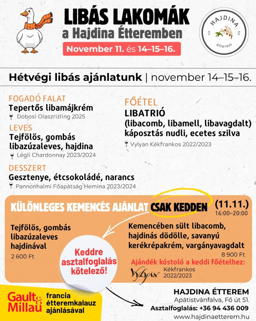 Kóstold meg libás finomságainkat a Gault&Millau francia étteremkalauz által ajánlott Hajdina Étteremben, ahol a hagyományos ízeket modern köntösben tálaljuk!