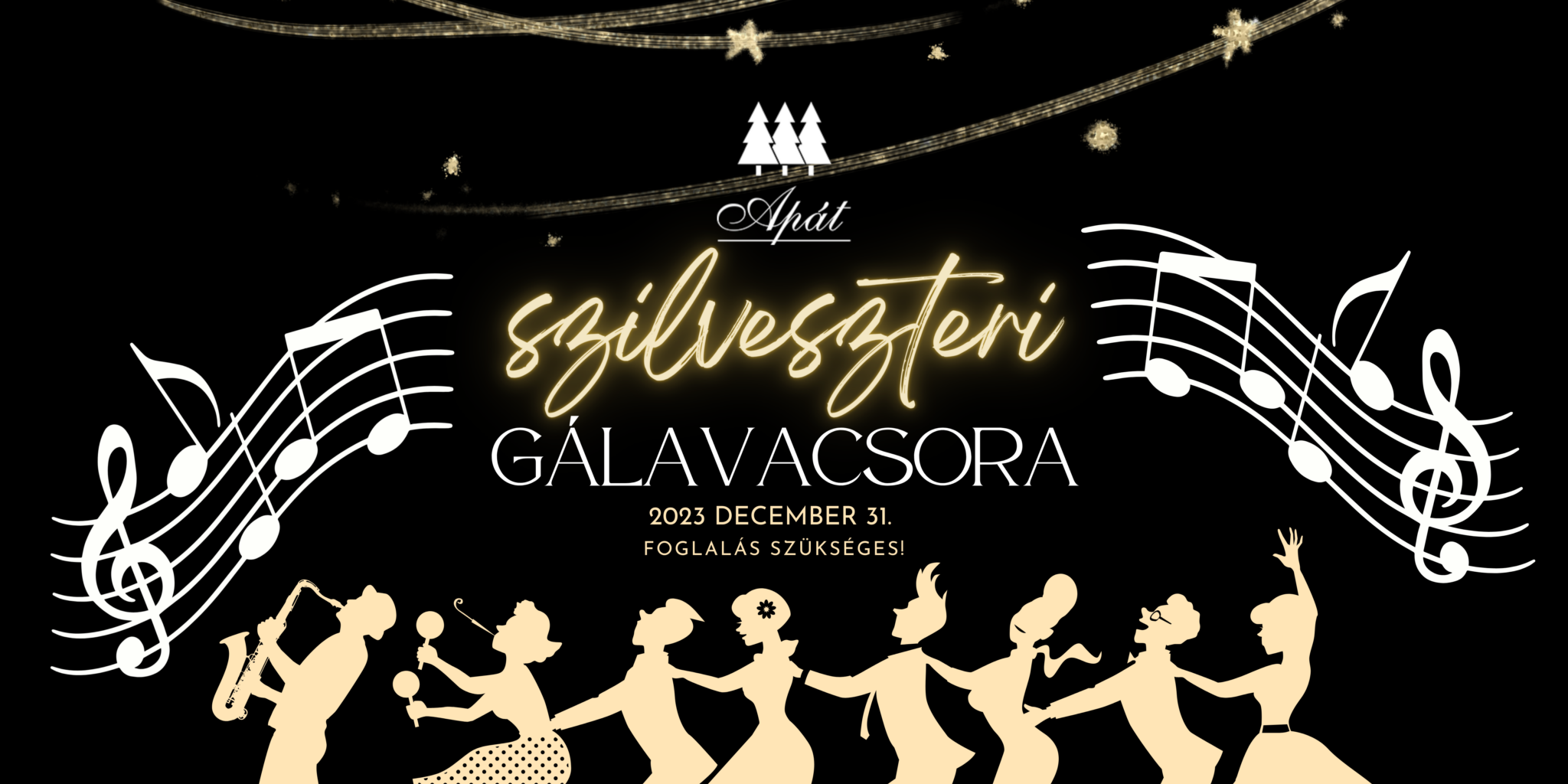 A vacsora ára: 21 500Ft/fő, mely tartalmaz egy üdvözlő italt, a svédasztalos ételeket, az éjféli koccintáshoz egy pohár pezsgőt és az éjféli ételeket!